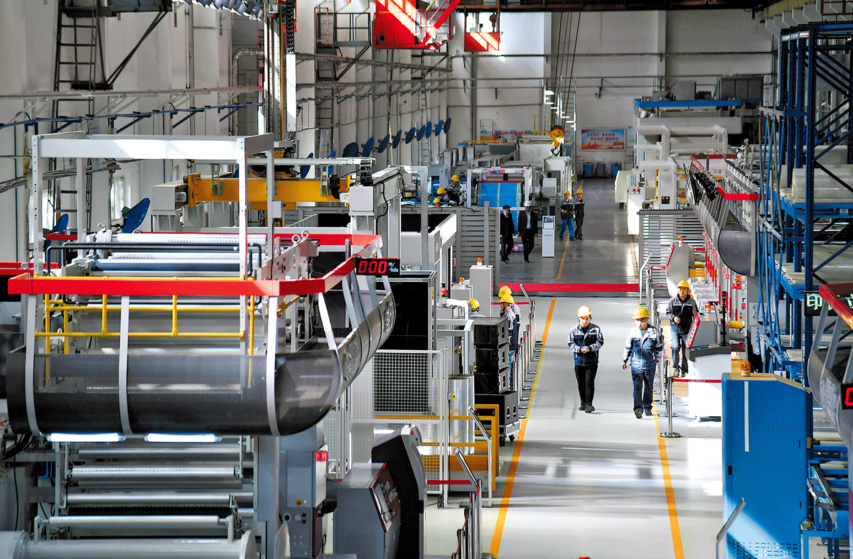 工作人員在渭南高新區(qū)陜西北人生產(chǎn)車(chē)間工作 新華社記者 張博文 攝